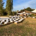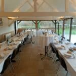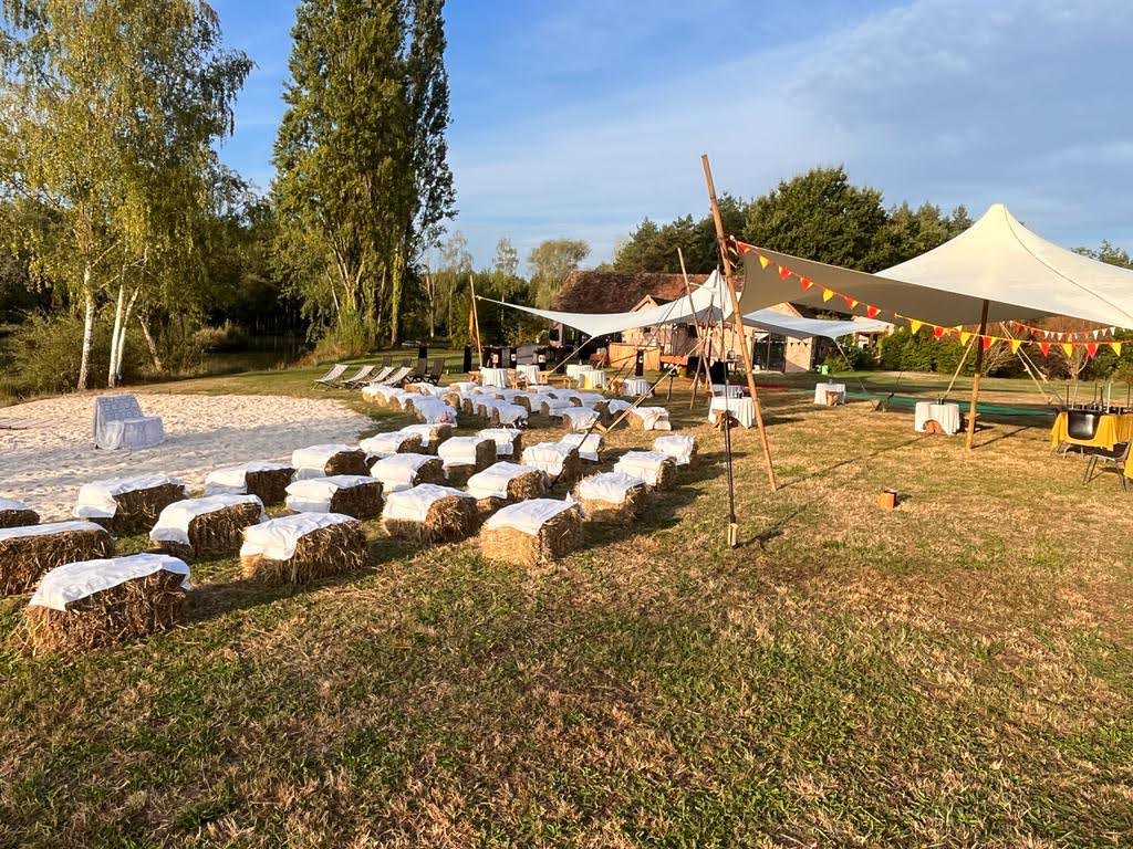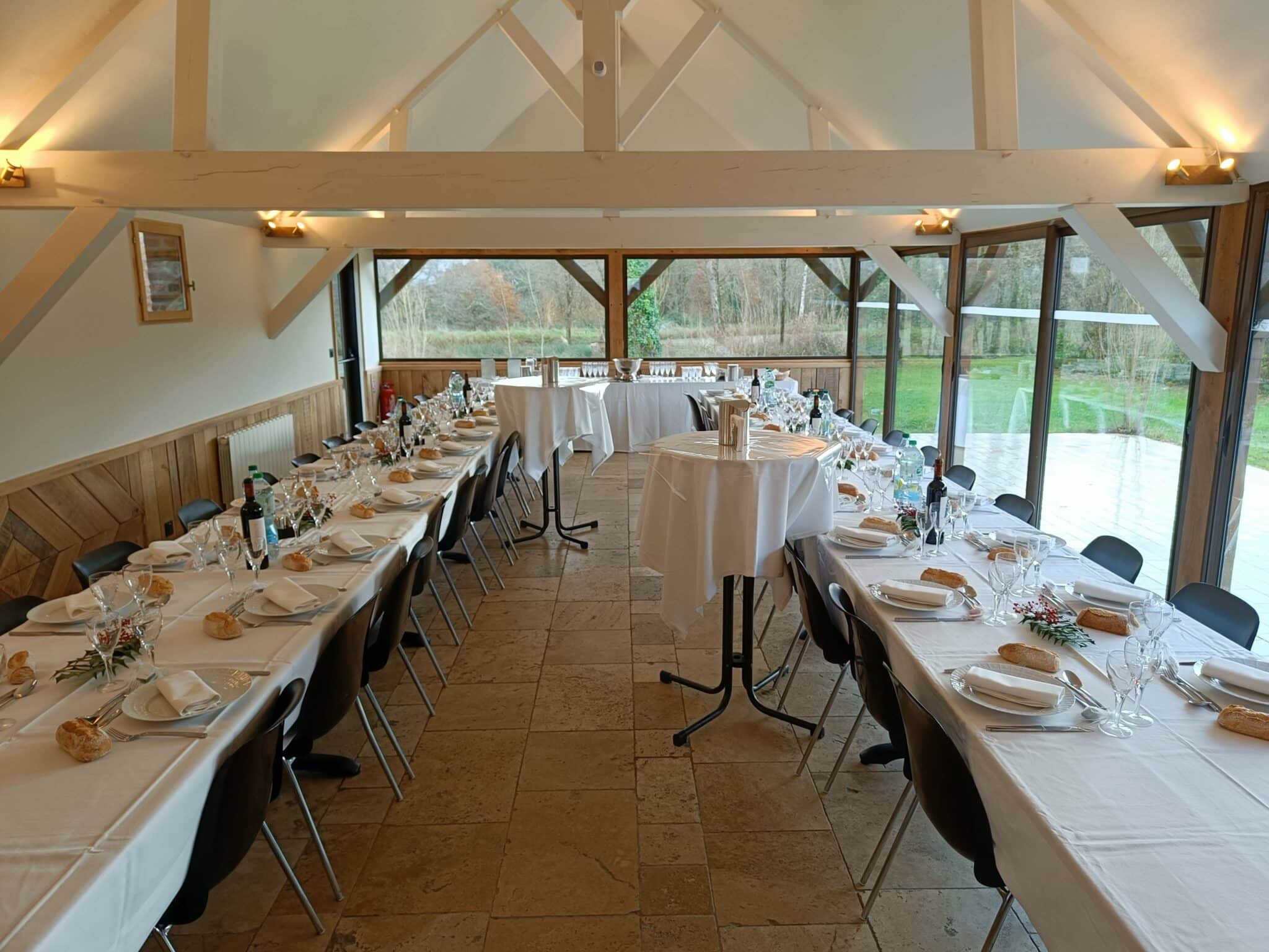 Salle de réception de 80m2 avec cuisine professionnelle attenante, tables, chaises et couverts à disposition